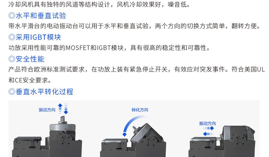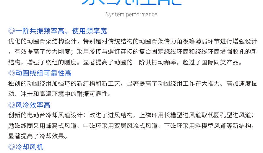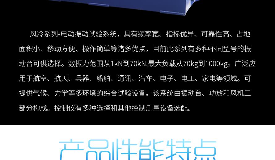 產品型號:JQA-032-150 品牌:劍 喬 用途:風冷電動振動系統,推力大,承載能力強,冷卻效率高。可分別完成三軸向的正弦振動試驗、寬帶隨機振動試驗以及經典(半正弦、梯形、后峰齒)脈沖和沖擊響應譜試驗。