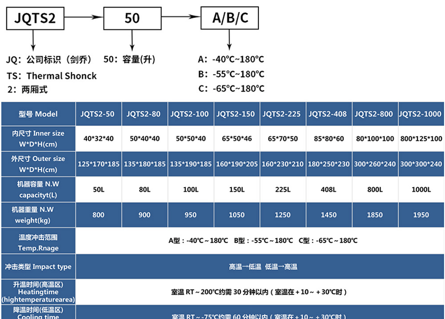 產(chǎn)品型號(hào):JQTS2-408 品牌:劍 喬 用途:兩箱式冷熱沖擊試驗(yàn)箱又名溫度沖擊試驗(yàn)箱或高低溫沖擊試驗(yàn)箱是用于考核產(chǎn)品對(duì)周圍環(huán)境溫度急劇變化的適應(yīng)性,裝備設(shè)計(jì)定型的鑒定試驗(yàn)和批產(chǎn)階段的例行試驗(yàn)中不可缺少的