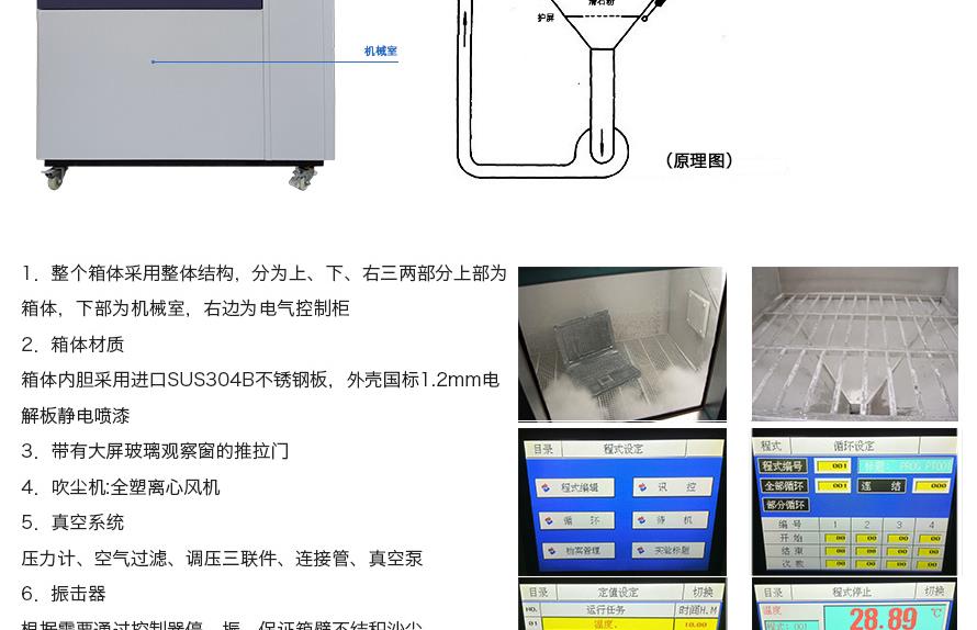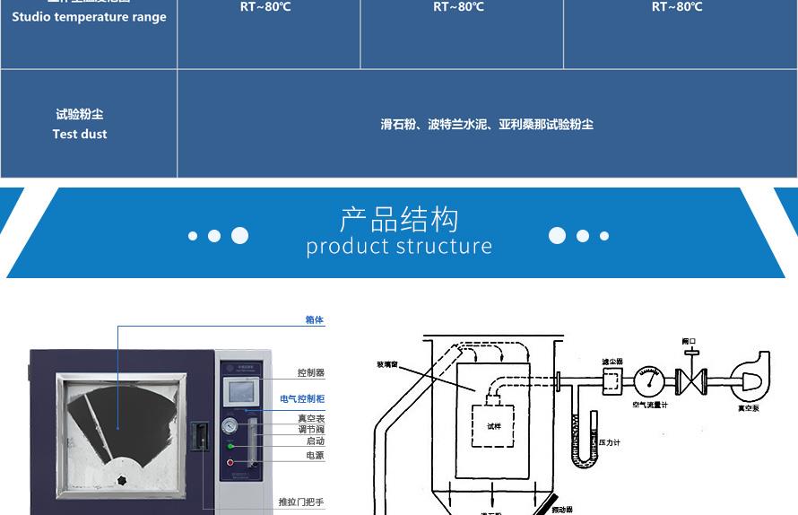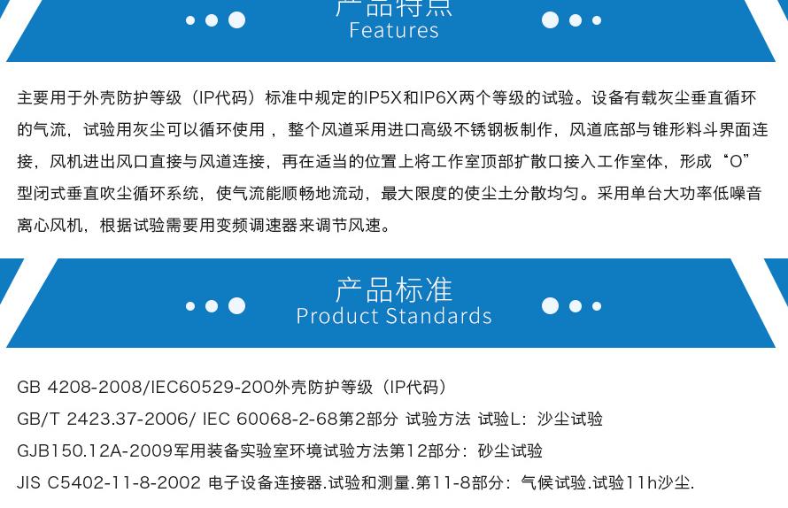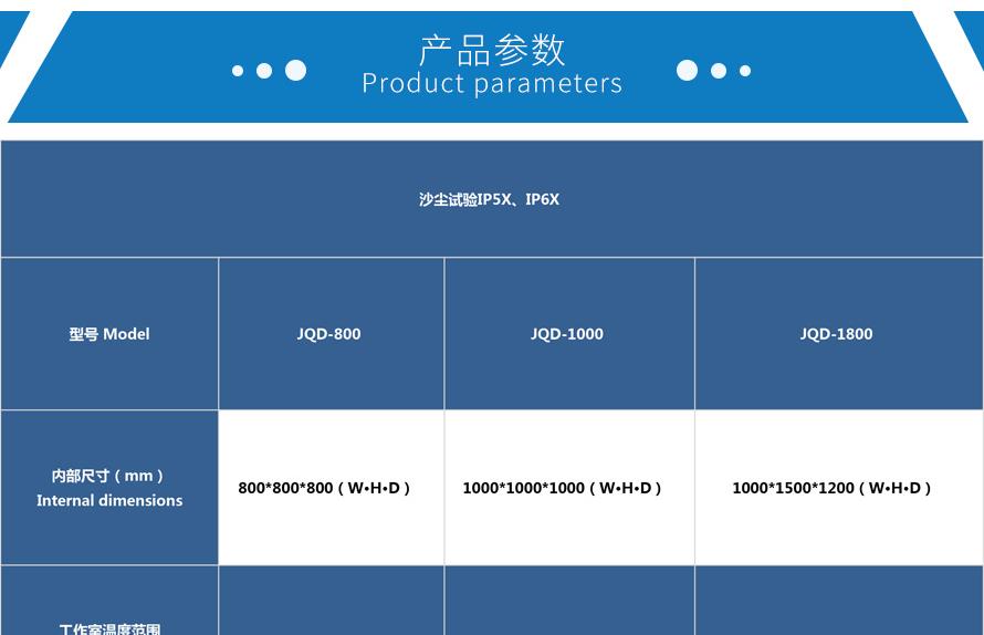 產(chǎn)品型號(hào):JQD-800 品牌:劍 喬 用途:沙塵試驗(yàn)箱學(xué)名為“砂塵試驗(yàn)箱”,用來類比自然界風(fēng)沙氣候環(huán)境對(duì)產(chǎn)品的破壞性,適用于檢測(cè)各種汽車零部件密封件、電子電工產(chǎn)品、機(jī)械電氣設(shè)備等產(chǎn)品的外殼密封性能